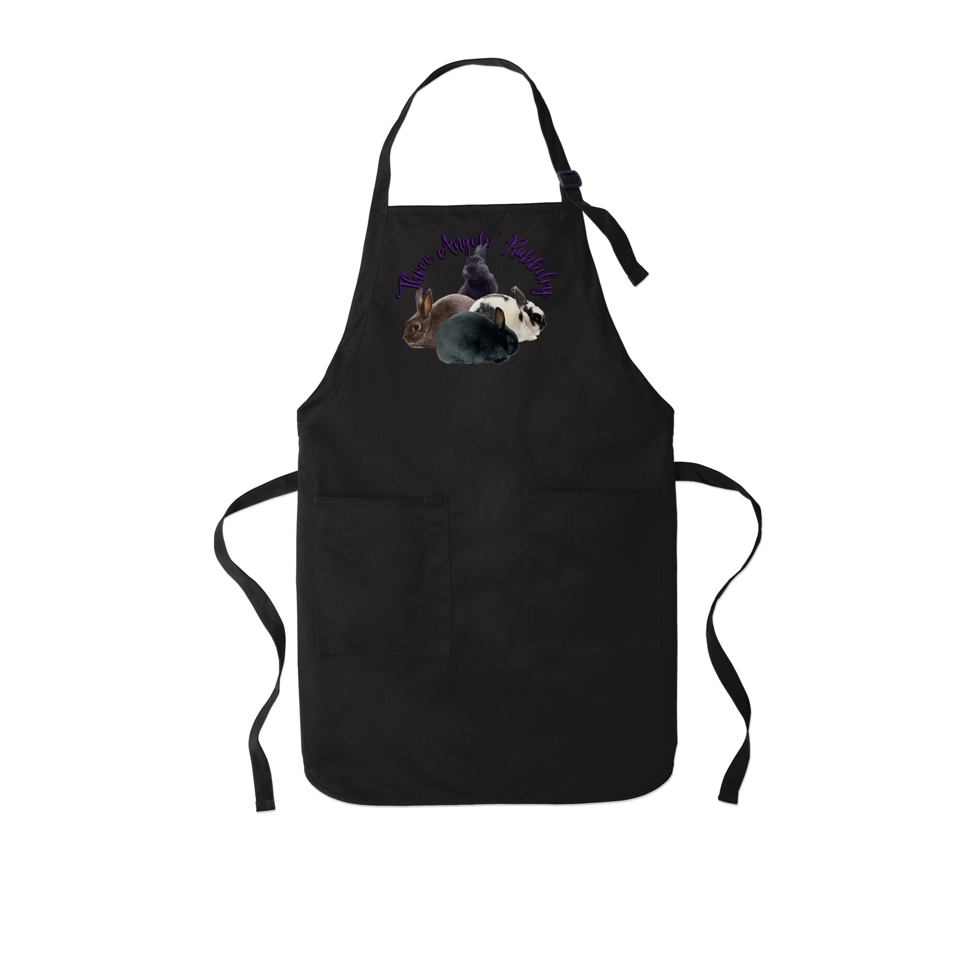 Customized Three Angels' Rabbitry Aprons! Aprons are an important part of a rabbit exhibitors' wardrobe. Promote your rabbitry's brand while protecting your clothes and body from those sharp toenails. This apron is 30 inches long and 22 inches wide, making it the perfect size for any adult. Made with 65% polyester and 35% cotton, offering both durability and comfort. The adjustable neck strap ensures a comfortable fit for all.