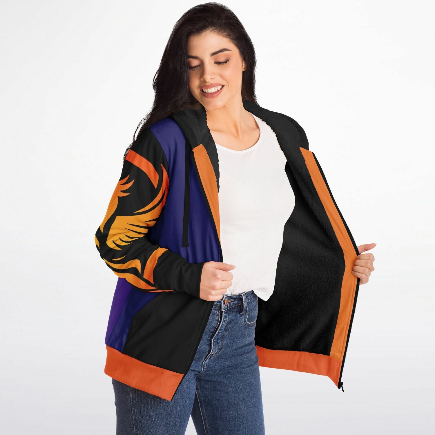 This microfleece zip-up hoodie features a soft and durable fabric. The microfleece lining on the inside will make this your most comfy zip-up hoodie ever! It also comes with a visible nylon zipper front closure. Each panel is individually printed, cut and sewn to ensure a flawless graphic with no imperfections.